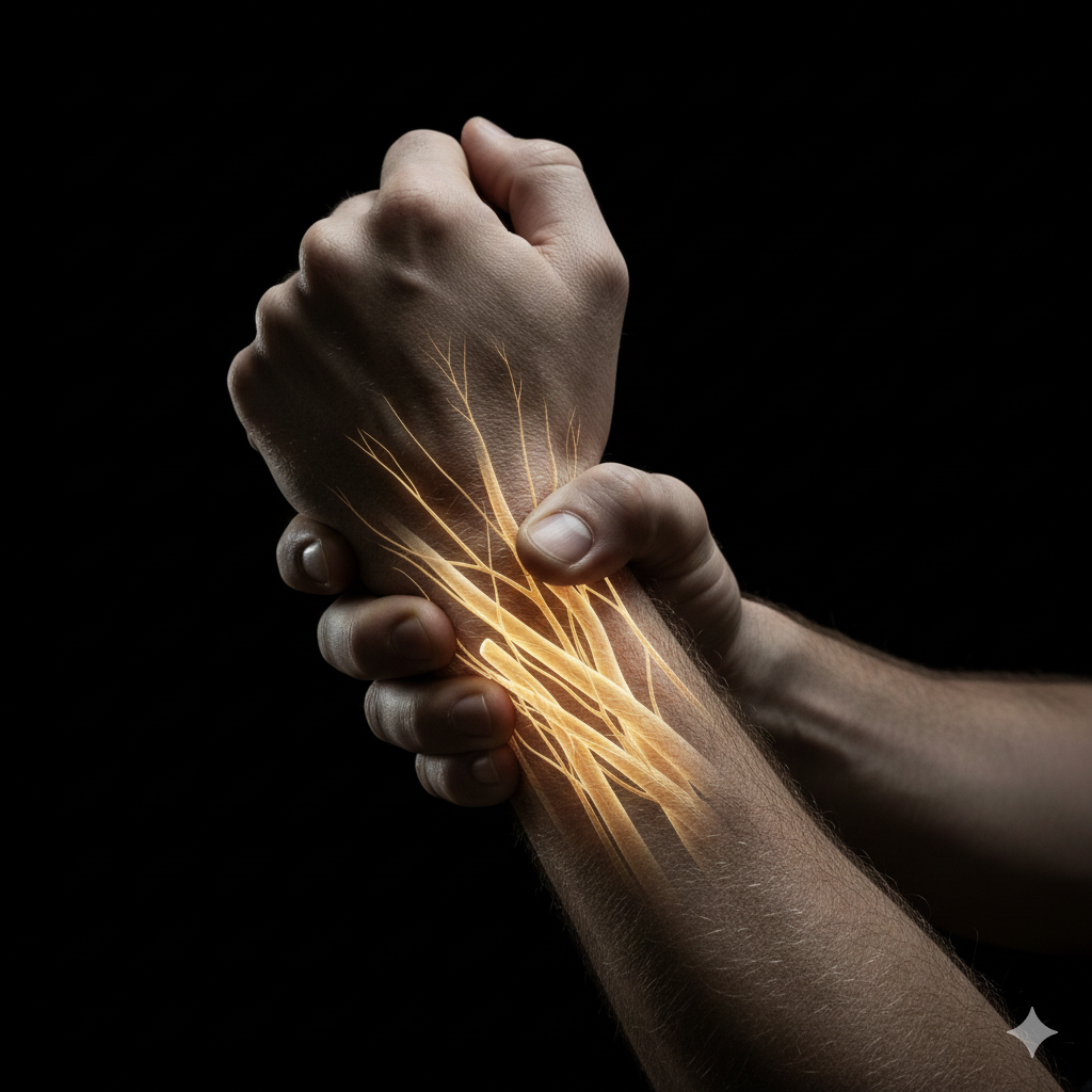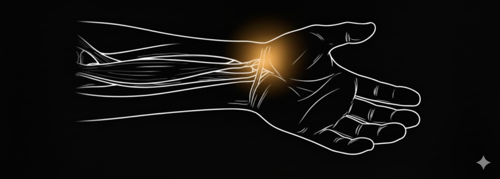 Sabe aquela sensação de 'formigamento' ou choque elétrico na ponta dos dedos (especialmente no polegar e indicador) após horas de trabalho? Isso não é má circulação. É compressão nervosa. Seu túnel do carpo está sufocando o nervo mediano.